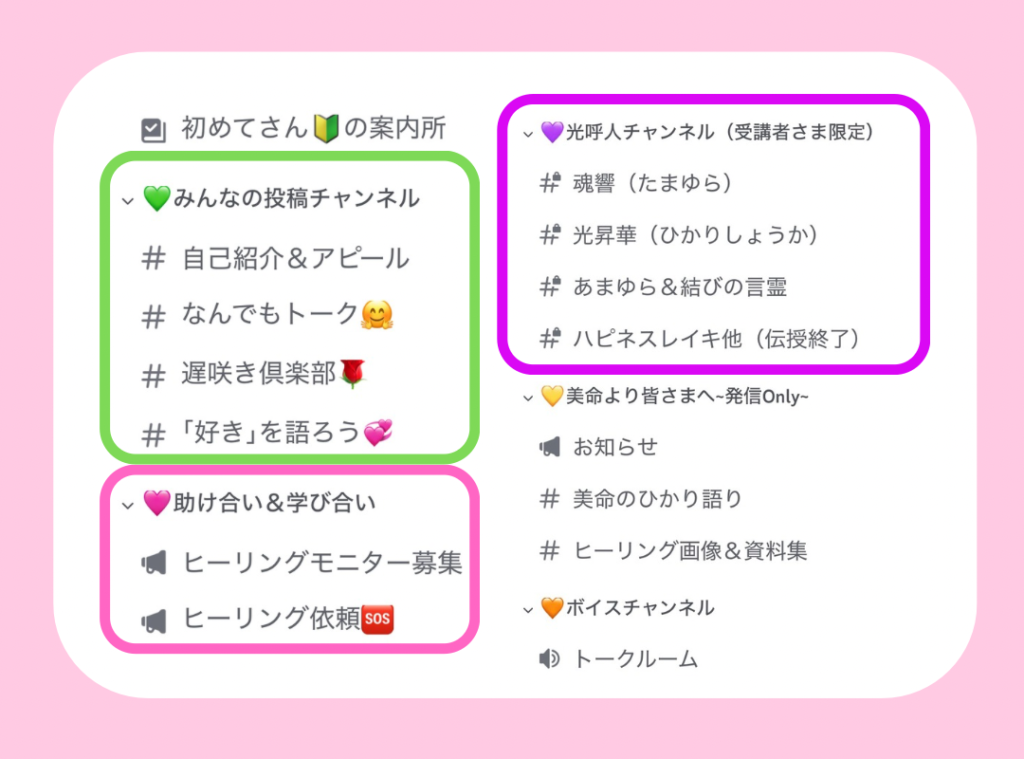 それぞれのヒーリングごとに